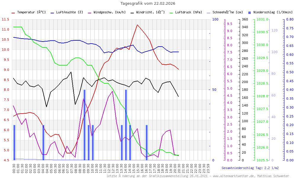 Diagramme Eine detaillierte Auswertung (Tag/Monat/Jahr) sowie weitere Diagramme finden Sie in AWEKAS (Link öffnet neues Fenster) oder alternativ WAdWA (Link öffnet neues Fenster)
