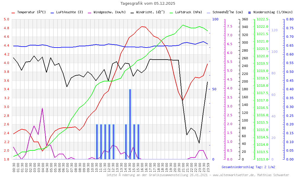 Diagramme Eine detaillierte Auswertung (Tag/Monat/Jahr) sowie weitere Diagramme finden Sie in AWEKAS (Link öffnet neues Fenster) oder alternativ WAdWA (Link öffnet neues Fenster)